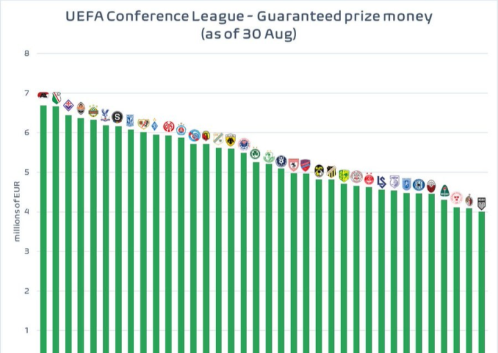 但欧联赛场其实和欧协联赛场的奖金收入相差却并未很大,至少欧协联赛场还是有至少10支俱乐部(阿尔克马尔等球队)的初始金额高于部分欧联的球队。